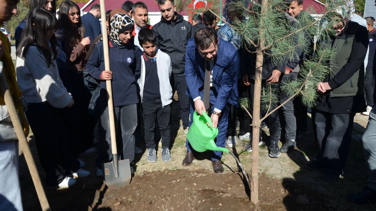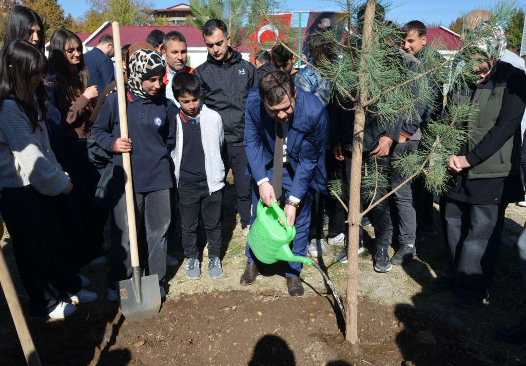 Tatvan Kaymakamı Yiğit Yaşar Demirer de, düzenlenen fidan dikim etkinliğine katılarak öğrencilerle birlikte fidan dikti.