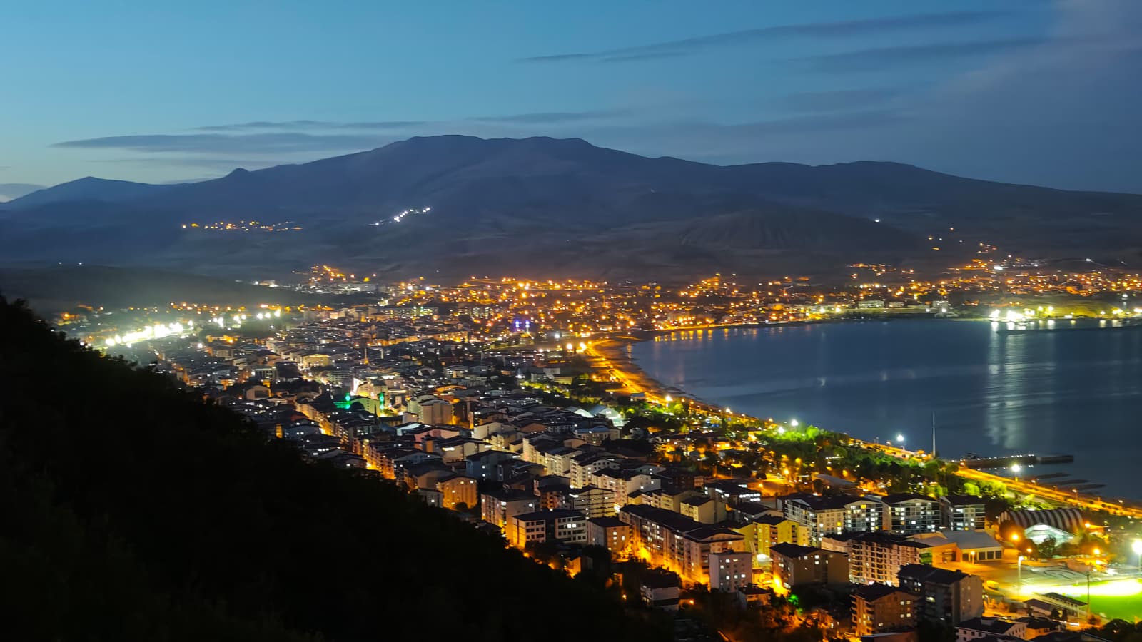 Bitlis’in Tatvan ilçesi, eşsiz gece manzarasıyla izleyenleri büyüledi. İlçeyi yüksekten gören Karataş mevkiinde kaydedilen görüntüler, görenlere görsel şölen yaşattı. Gün batımının ardından şehri aydınlatan ışıkların Van Gölü’nün maviliğiyle bütünleştiği manzara, fotoğraf tutkunları ve doğaseverlerin ilgisini çekti. Tatvan’ın doğal güzelliklerine farklı bir açıdan ışık tutan bu manzara, özellikle akşam saatlerinde seyir keyfi sundu.
