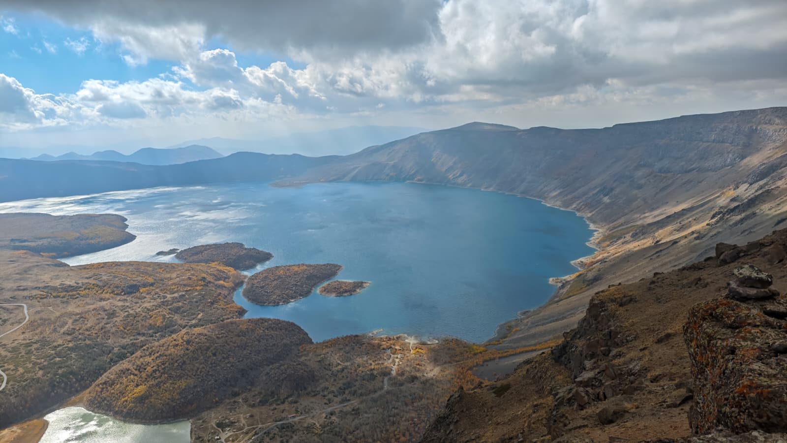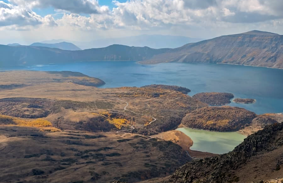 Gezi kapsamında zirveye ulaşan katılımcılar, Nemrut Krater Gölü ve geniş kaldera alanının sonbahar renkleriyle oluşturduğu manzarayı kuş bakışı izleme fırsatı buldu.