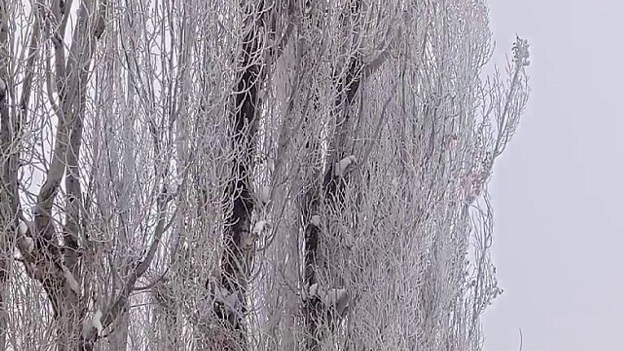 Soğuk hava hayatı olumsuz olarak etkilemeye devam ederken ağaçlarda oluşan kırağı görsel şölen oluşturdu.