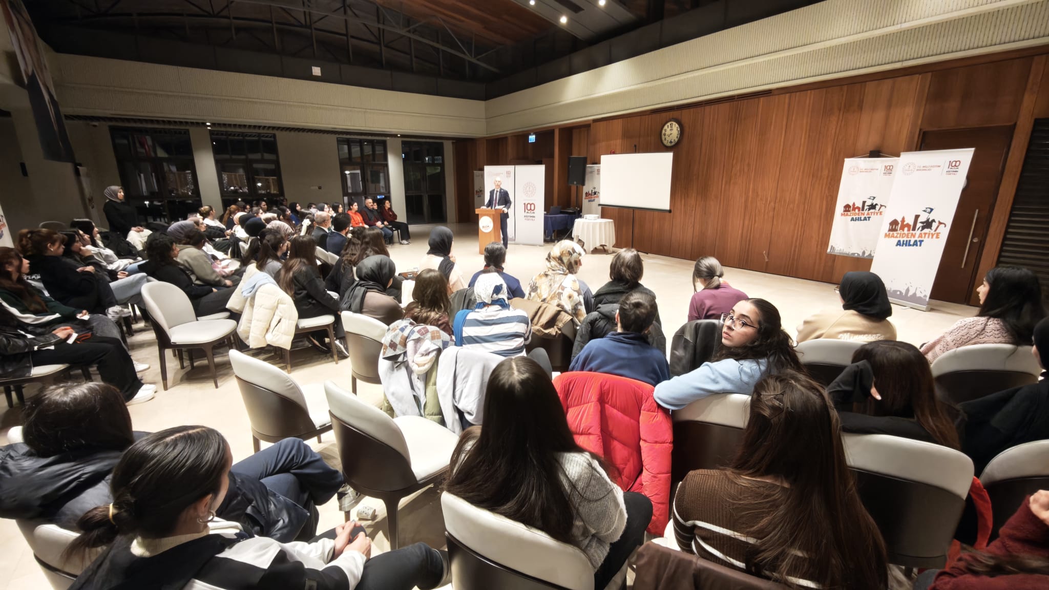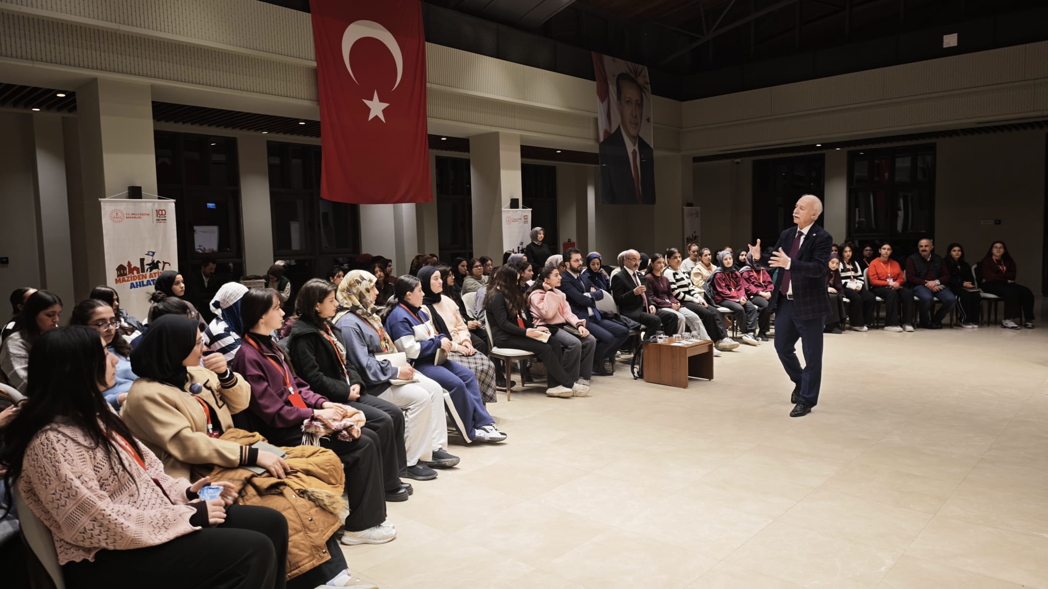 Cumhurbaşkanlığı himayelerinde, Millî Eğitim Bakanlığı’nın organizasyon ve yürütücülüğünde sürdürülen “Maziden Atiye Ahlat” programı devam ediyor. Programa davet edilen Trakya Üniversitesi Rektörü Prof. Dr. Mustafa Hatipler, Rektör Yardımcısı Prof. Dr. Sedat Üstündağ ile birlikte Ahlat Cumhurbaşkanlığı Külliyesi’nde İstanbul, İzmir, Gümüşhane, Erzurum, Konya, Van, Şırnak, Şanlıurfa, Muş, Bitlis, Kars, Karabük, Çorum, Çankırı, Çanakkale, Iğdır, Ağrı ve Trabzon illerinden gelen öğrencilerle bir araya gelerek güncel soru ve sorunlar üzerinde hasbihalde bulundu.