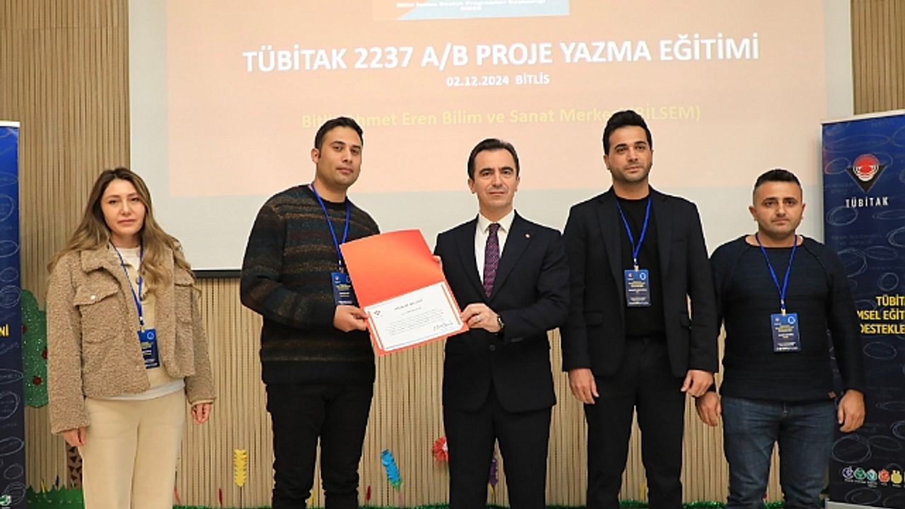 Bitlis Bilim ve Sanat Merkezi’nde (Bilsem) gerçekleştirilen törene il genelinden 110 öğretmen katıldı. Açılış konuşmalarının ardından öğretmenlere sertifikaları, Bitlis Valisi Ahmet Karakaya ve protokol üyeleri tarafından takdim edildi. Törene, Bitlis Eren Üniversitesi Rektörü Prof. Dr. Necmettin Elmastaş, İl Milli Eğitim Müdürü Bilal Gür, TÜBİTAK Van Bölge Koordinatörü Prof. Dr. Hayati Çavuş ve çok sayıda öğretmen katıldı. Düzenlenen eğitim programıyla, öğretmenlerin bilimsel araştırma kültürünü geliştirmesi ve öğrencilerin bilimsel projelere olan ilgisinin artırılması hedeflendi. Sertifika töreni, eğitim faaliyetlerinin önemine vurgu yapılan konuşmalarla son buldu.