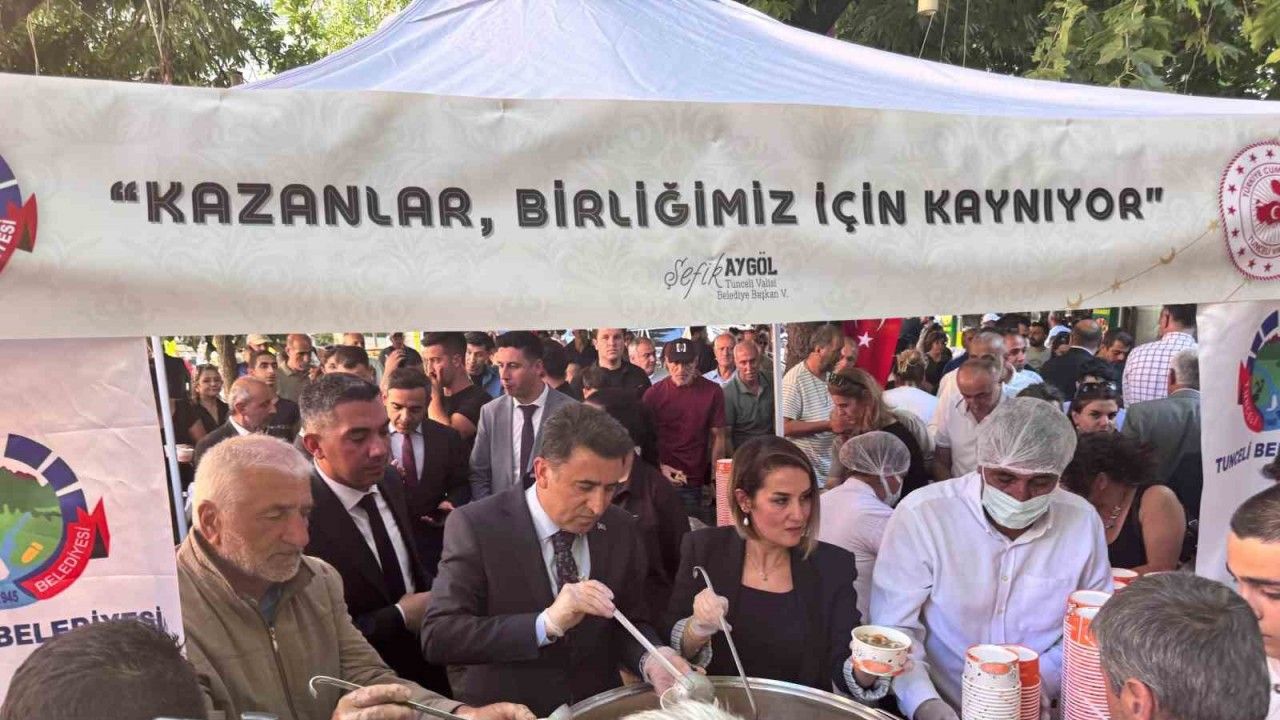 Tunceli’de valilik ve belediye tarafından "Kazanlar Birliğimiz için Kaynıyor" sloganıyla aşure ve lokma dağıtımı gerçekleştirildi. Merkez Moğultay Mahallesi Sanat Sokağı’nda düzenlenen etkinliğe Vali Şefik Aygöl, eşi Nazlı Aygöl, kurum amirleri ve vatandaşlar katıldı. Etkinlikte konuşan Vali Aygöl, aşure gününde bir arada olmaktan mutlu olduğunu belirterek, "Rabbim birliğimizi daim eylesin, devletimizi güçlü kılsın, milletimizi muzaffer eylesin inşallah. Aşuremiz hayırlı olsun" dedi.