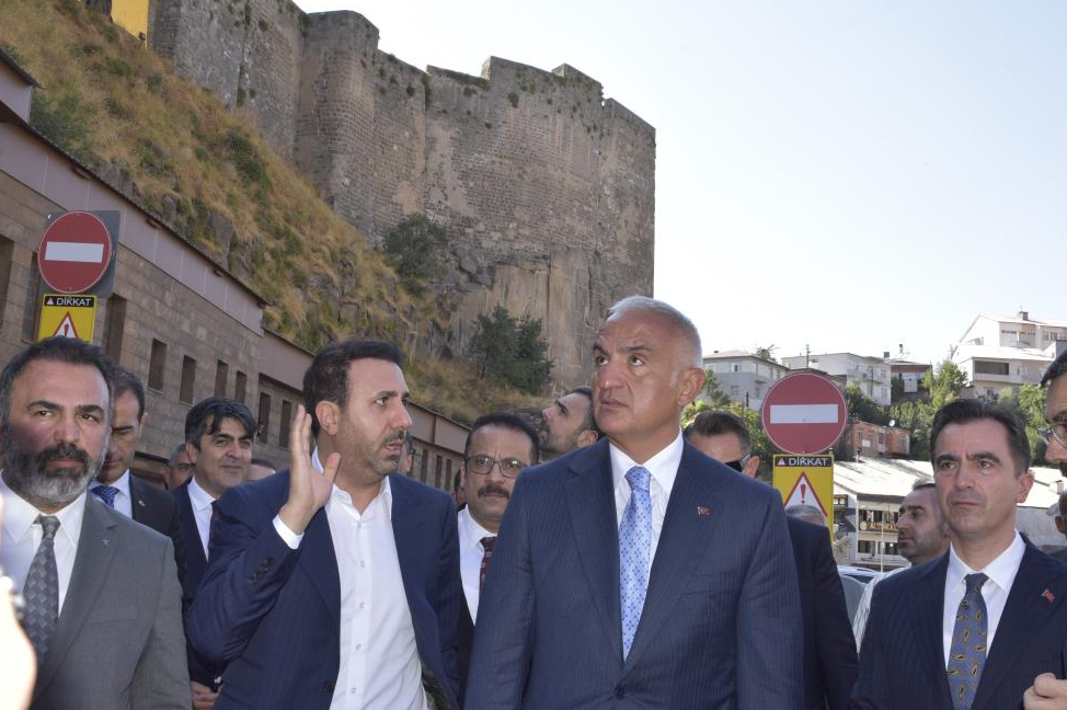 Bitlis’in sahip olduğu turizm potansiyeline de vurgu yapan Bakan Ersoy, "Doğal zenginlik ile ilgili olarak ise Nemrut Kalderası tek başına her şeyi anlatıyor aslında. Bir volkan olarak aktif olduğu çağlarda görkemiyle kelimeleri kifayetsiz bırakan Nemrut’taki bu muhteşem oluşum başlı başına Bitlis’i ziyaret etmek için yeterli bir sebeptir. Deniz seviyesinden 2247 metre yükseklikte sudan bir hilal olarak göz kamaştıran ve Dünyanın ikinci, Türkiye’nin en büyük krater gölü olan Nemrut Gölü, ayrıca Ilıgöl, Nazik Gölü, 6 adet mağara, şifalı kaplıca ve buhar kaynakları, jeotermal zenginlik, doğal volkanik oluşumlar ve bu eşsiz sahanın özgün iklim ve toprak yapısıyla ortaya çıkan ve farklı bitki türlerini bir arada barındıran florası ile yaban hayatı gerçekten çok özel. Her şeyden önce burası özenle korunmalı ve bundan kesinlikle ödün vermeden bilinirliği sağlanarak hak ettiği değeri görmesinin önü açılmalıdır ve arkeoloji çalışmaları. Hem yatırım programı hem de Geleceğe Miras projesi kapsamında ödenek sunduğumuz Bitlis Kalesi’nde çalışmalar bu yılın sonunda tamamlanacak. Ahlat Selçuklu Meydan Mezarlığı ve Eski Ahlat Şehri Kazısı ile Kef Kalesi kazısında çalışmalar devam ediyor. Selçuklu Meydan Mezarlığı’nda yürütülen çalışmalar; mezar şahide ve sandukalarının zemin blokaj düzeltmeleri, epigrafik çözmeler, mimari çizimler, liken temizlikleri, restorasyon ve konservasyon ve temizlik çalışmaları olarak sürdürülmektedir. Kef Kalesi’nde yürütülen çalışmalarda ise fil ayaklarının yıkılmış ve çevreye yayılmış büyük blok taşları tekrardan ayağa kaldırılmaya başlanmıştır. Urartu Sarayının yukarı salonunda kazı çalışmaları devam etmekte ve ayrıca sarayın giriş kısmında da kazı çalışması yapılması planlanmaktadır" diye konuştu.