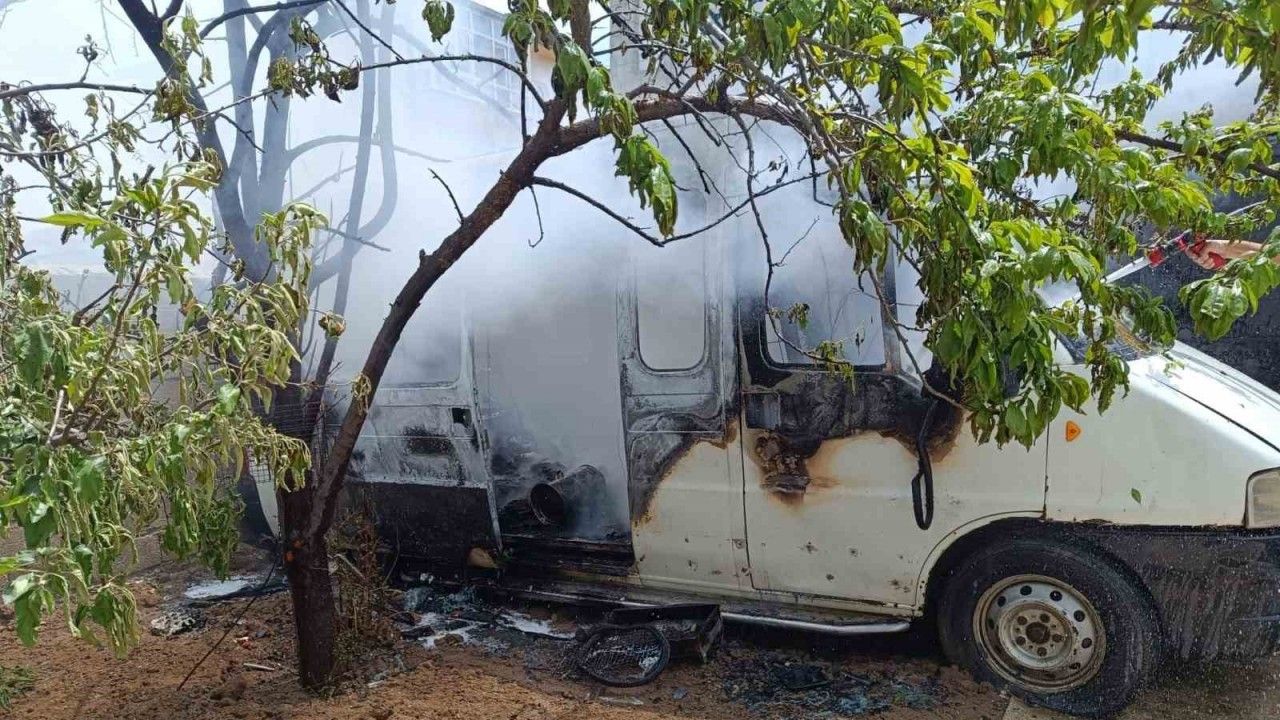 Van’ın Tuşba ilçesinde park halindeki minibüs yanarak kullanılamaz hale geldi.