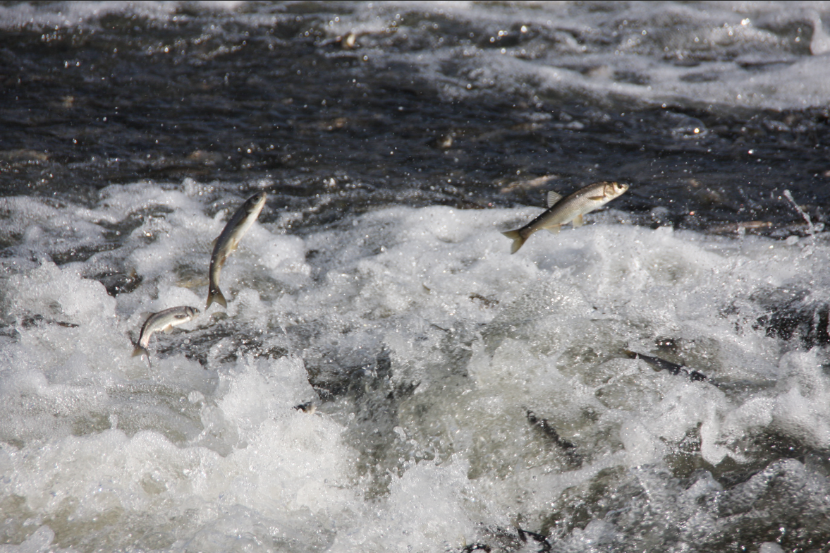 Önüne çıkan engelleri adeta uçarcasına aşan inci kefali, izleyenlere görsel şölen, dere kenarlarına akın eden martılara ise ziyafet sunuyor.