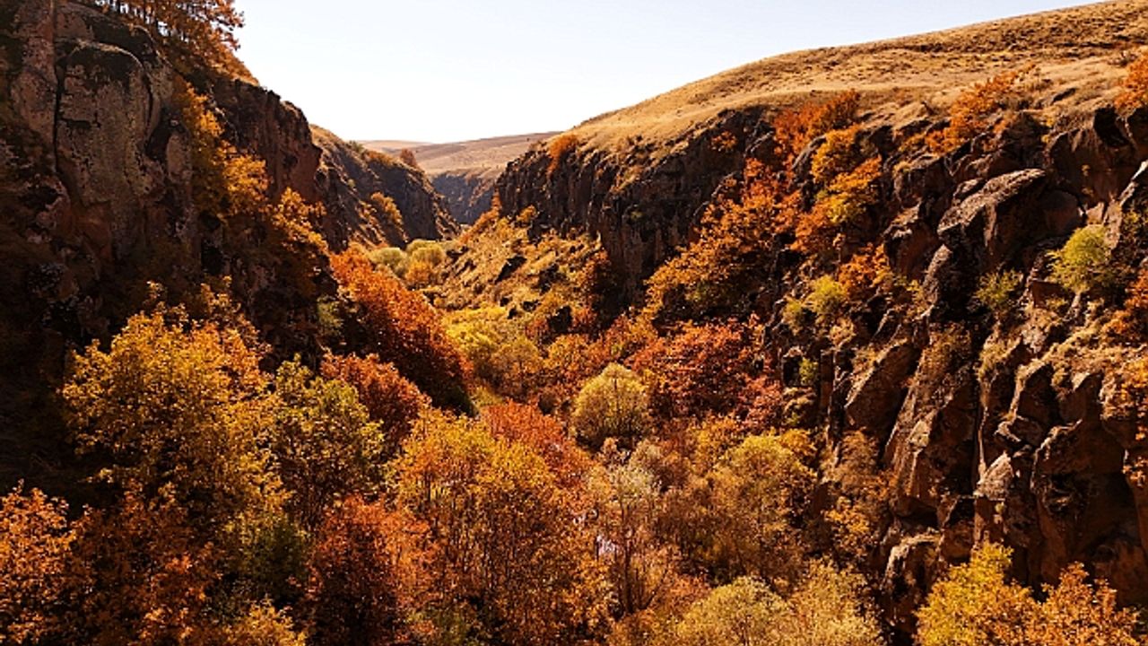 Bitlis’in Ahlat ilçesinde bulunan ve içinde mağaraların bulunduğu Uludere Kanyonu sonbahar güzelliğine büründü.