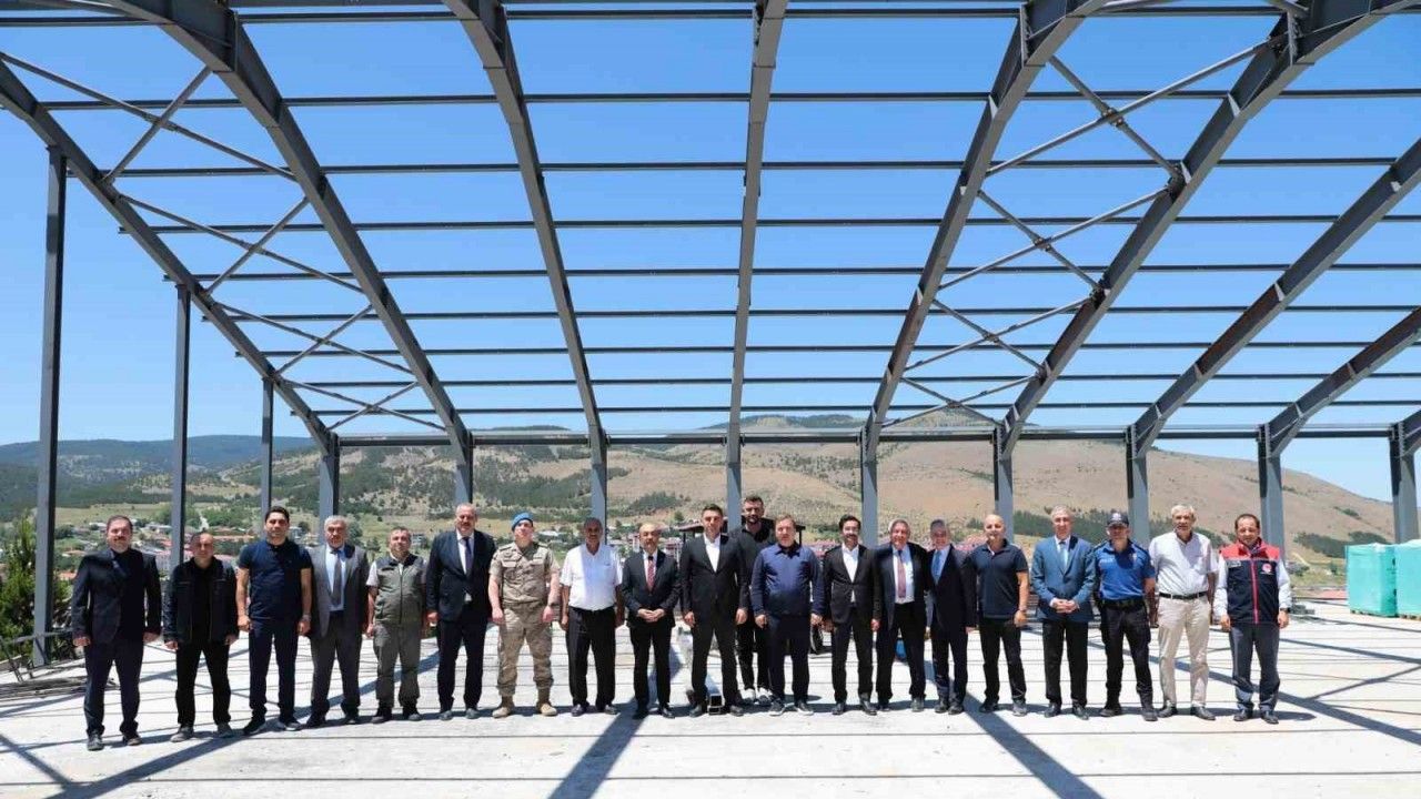 ERZİNCAN (İHA)-Erzincan Valisi Hamza Aydoğdu, Refahiye ilçesinde yapımı devam eden Binali Yıldırım Çok Amaçlı Salon inşaatında incelemelerde bulundu.