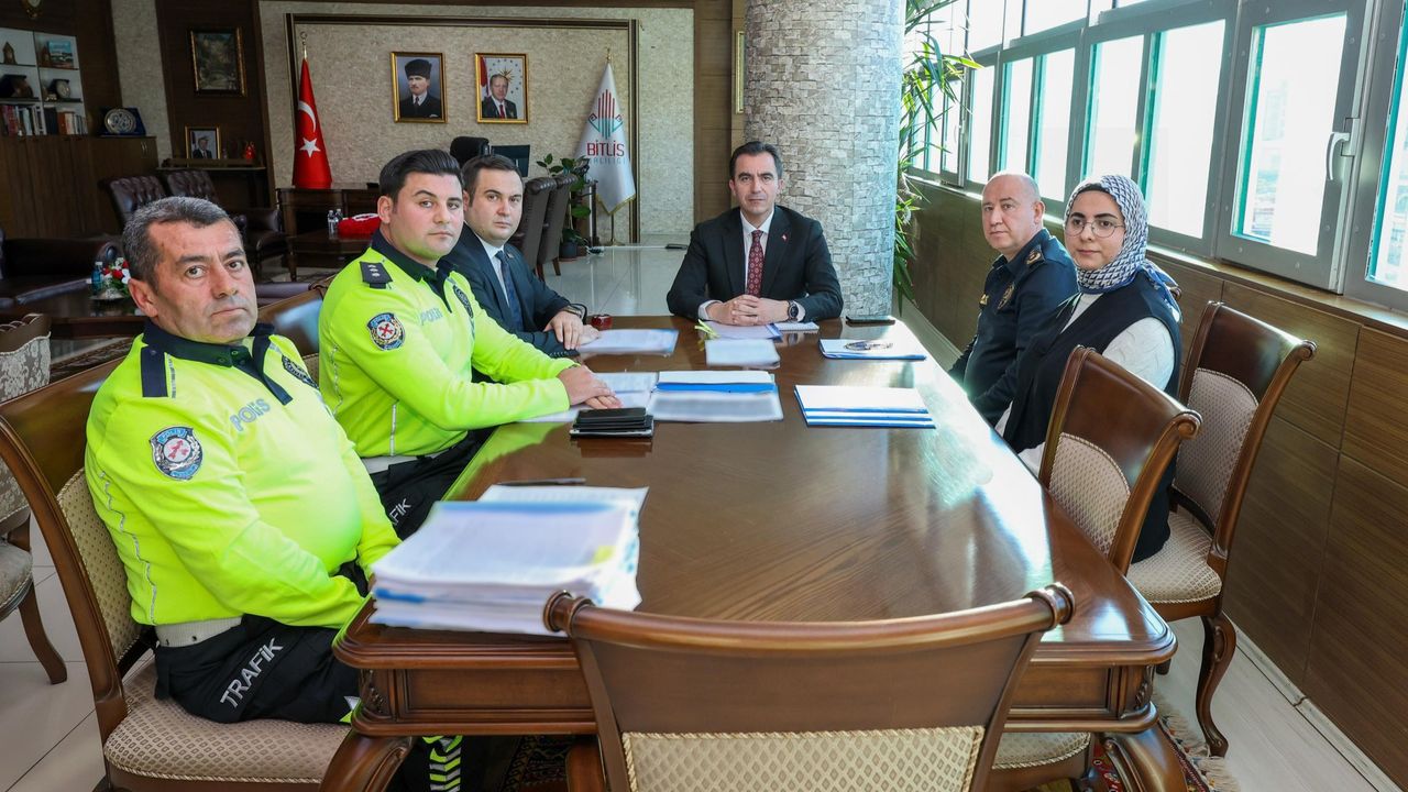 Bitlis Valisi Ahmet Karakaya başkanlığında, Vali Yardımcısı Göksel Yüksel, İl Emniyet Müdür V. İsa Coşar ve Trafik Şube Müdür V. Uğur Altuntaş ile birlikte, Bitlis ili genelinde trafik düzenlemeleri ve alınacak kararlarla ilgili toplantı gerçekleştirildi.