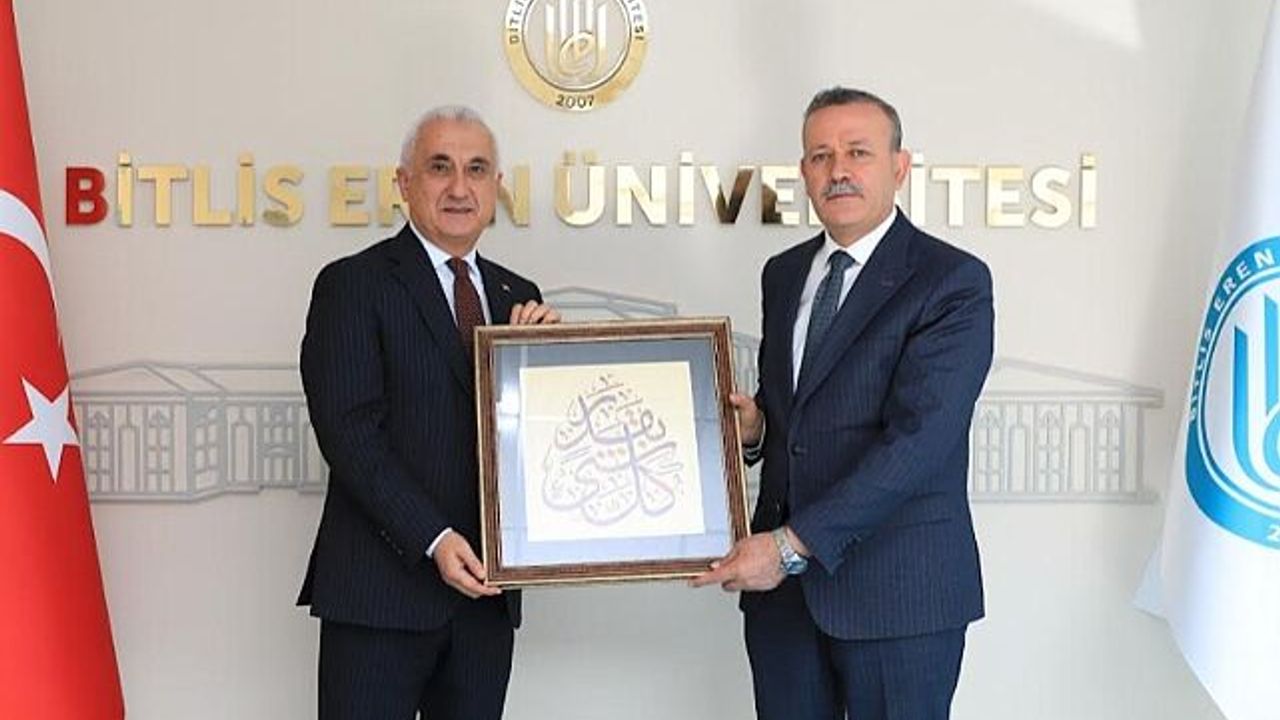 Muş Valisi Avni Çakır, Bitlis Eren Üniversitesi'ni ziyaret ederek, Rektör Prof. Dr. Necmettin Elmastaş ile bir araya geldi.