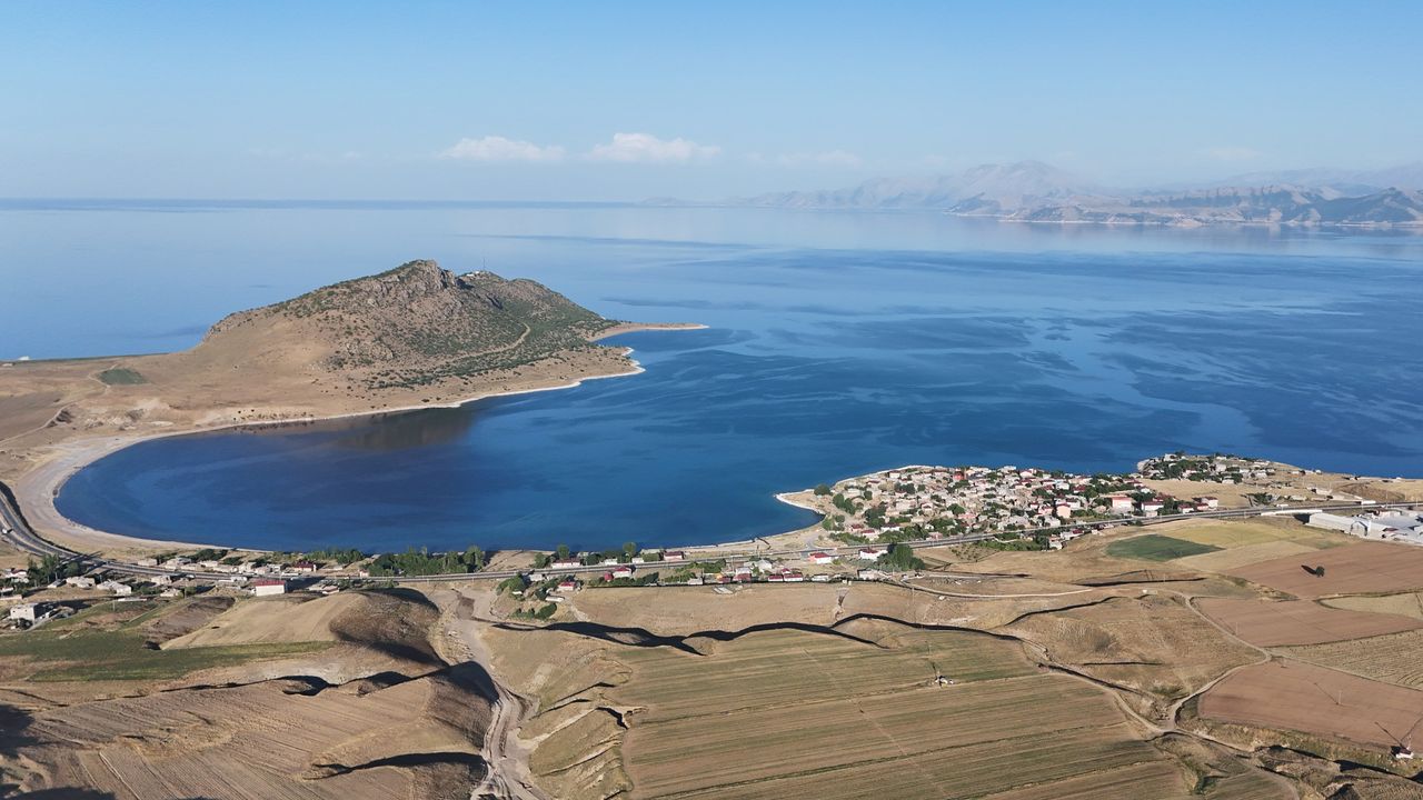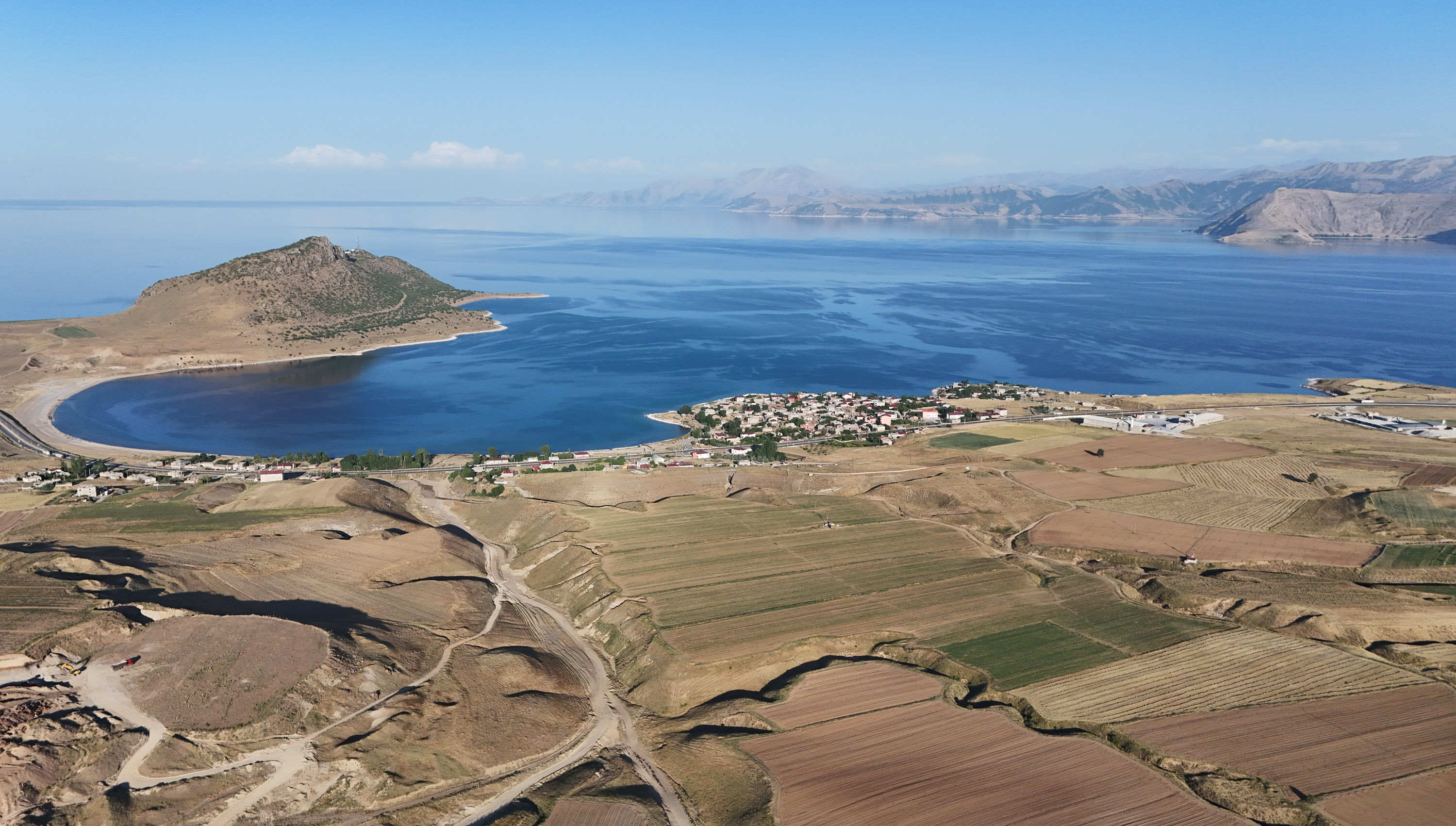 Dron ile çekilen görüntülerde köyün Van Gölü ile iç içe geçmiş manzarası dikkat çekiyor. Gökyüzünden bakıldığında yeşilin ve mavinin buluştuğu noktada yer alan Kıyıdüzü, doğayla iç içe sakin bir yaşamın izlerini taşıyor.