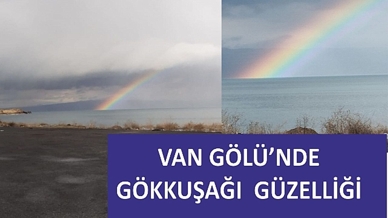 Van Gölü’ne düşen gökkuşağı hayranlık uyandırdı.