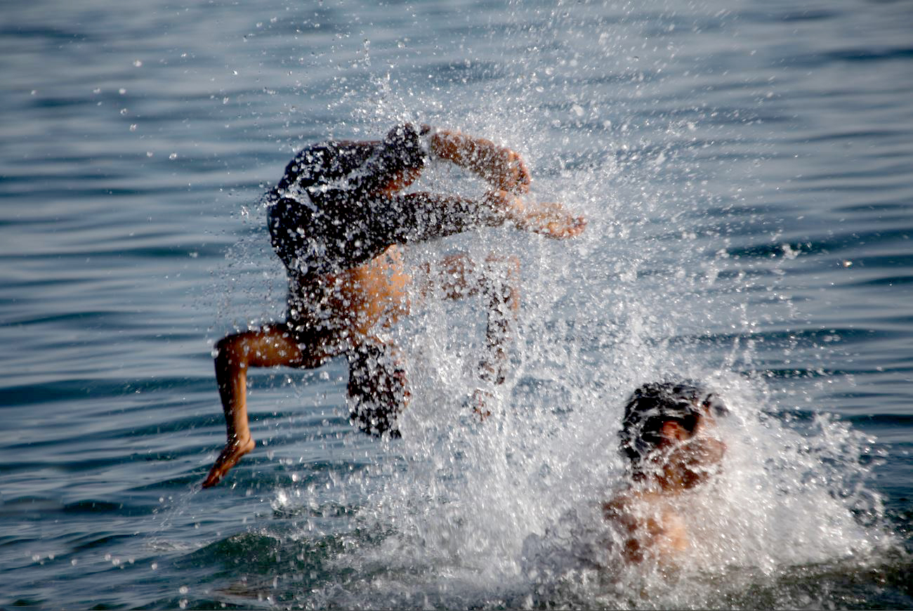 Van Gölü kıyılarında yer alan Tatvan, Ahlat ve Adilcevaz sahilleri, sonbahar serinliği tam anlamıyla kendini hissettirmeden gençlerin buluşma noktası oldu. Günün sıcak saatlerinde sahile gelen gençler, gölün berrak sularında yüzerek serinliyor. Kimi gençler ise kıyıdan yaptıkları akrobatik dalışlarla hem eğleniyor hem de gölün maviliklerinin tadını çıkarıyor.