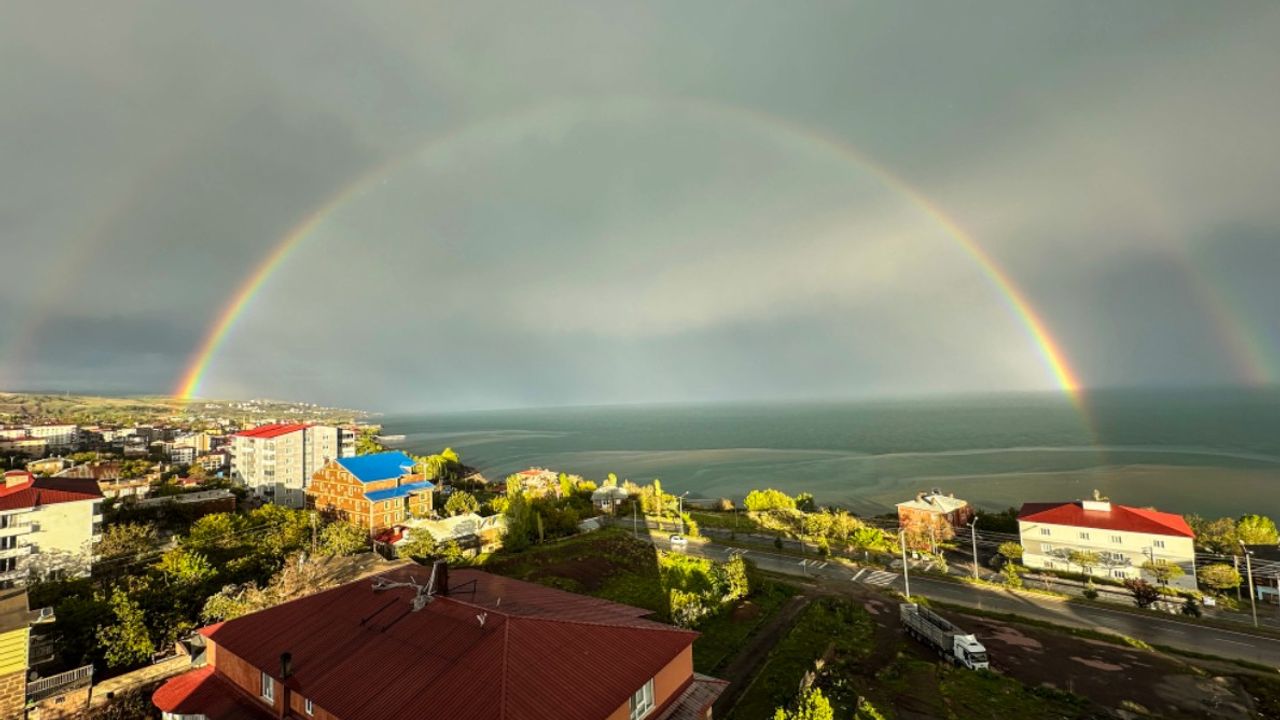 Gökkuşağının oluşturduğu bu kartpostallık görüntüler, vatandaşlar tarafından cep telefonlarıyla fotoğraflanarak sosyal medyada paylaşıldı.