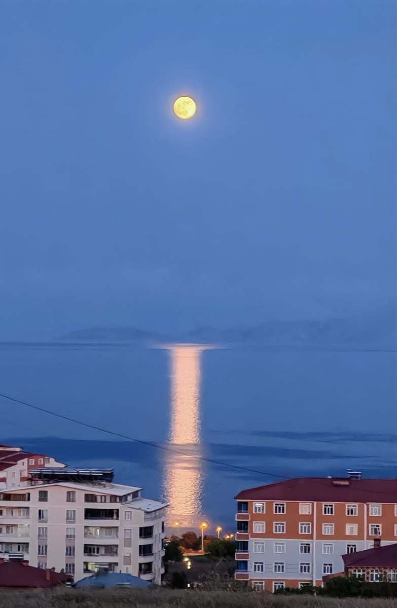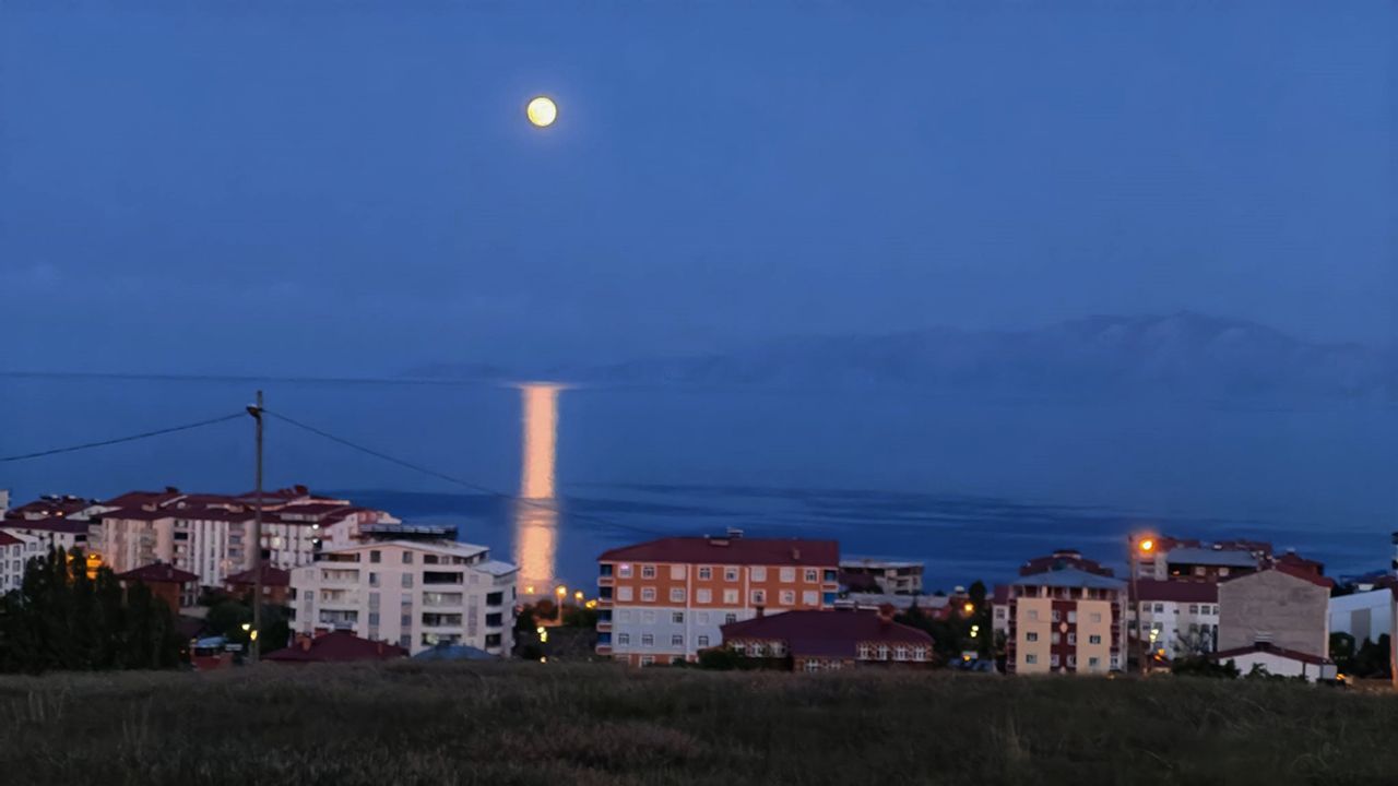 Bitlis’in Ahlat ilçesinde akşam saatlerinde Van Gölü’nde oluşan yakamoz, görenleri büyüledi. Doğal bir ışık şöleni sunan yakamoz, adeta bir deniz feneri gibi göl çevresini aydınlattı.