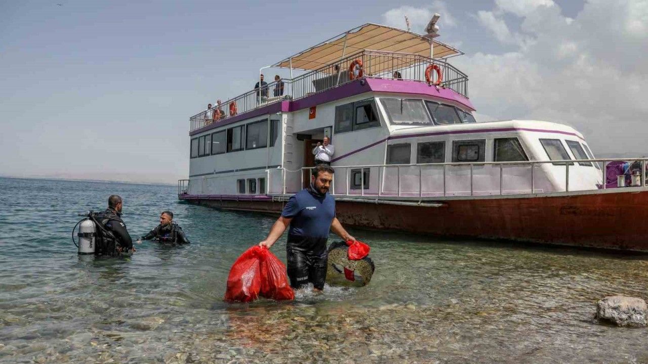 Van Gölü’nün kirlilikten kurtarılması ve gelecek nesillere daha temiz bırakılması amacıyla geceli gündüzlü faaliyetlerini sürdüren Van Büyükşehir Belediyesi ekipleri, yürütülen çalışmalarla Van Gölü ekosistemini korumayı hedefliyor. Bu kapsamda Büyükşehir Belediyesi İklim Değişikliği ve Sıfır Atık Dairesi Başkanlığı ile İtfaiye Dairesi Başkanlığı bünyesindeki Su Altı Arama Kurtarma Birimi’ndeki dalgıçlar tarafından göl dibindeki atıklar temizlendi.