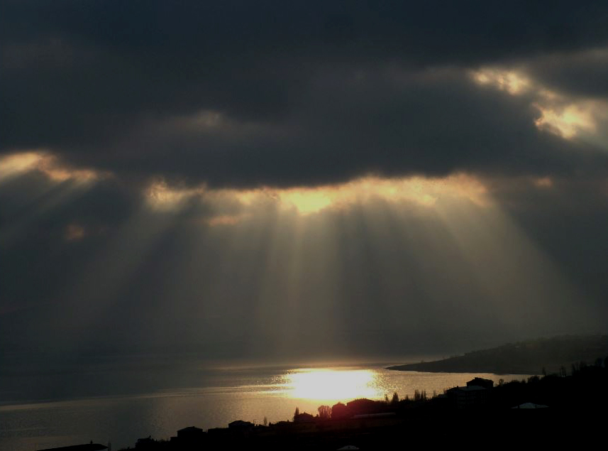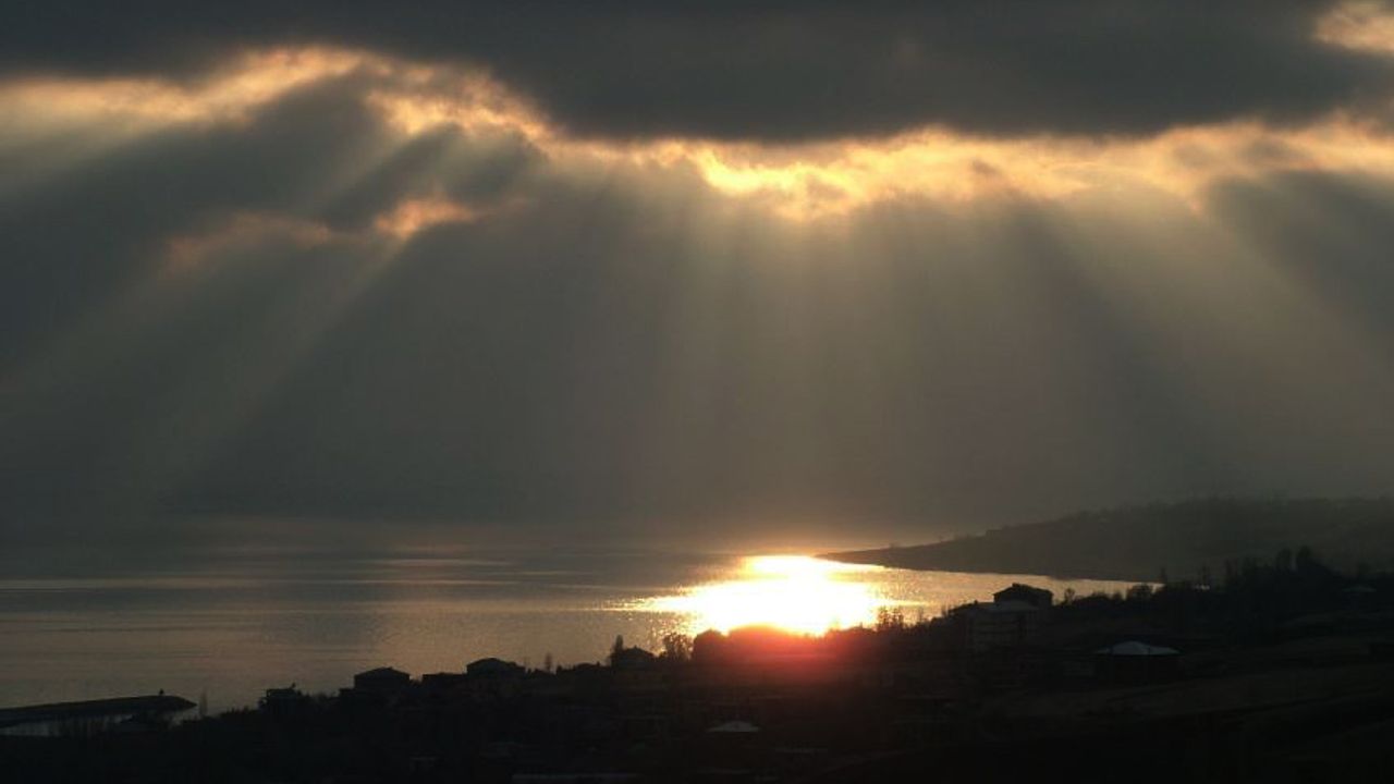 Bitlis’in Ahlat ilçesinde, güneş ışıklarının bulutların arasından süzülerek Van Gölü’ne düşmesi muhteşem manzaralar oluşturuyor. Gökyüzündeki bu doğal görsel şölen, hem bölge halkını hem de fotoğraf tutkunlarını kendine hayran bırakıyor. Özellikle gün batımında ortaya çıkan ışık huzmeleri, göl yüzeyine yansıyarak eşsiz bir güzellik sunuyor.