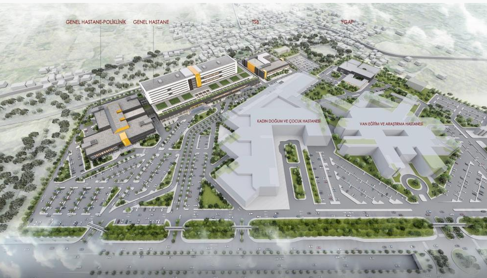 Doğu Anadolu Bölgesi’nde yaklaşık 3 milyon hastaya hizmet veren SBÜ Van Eğitim ve Araştırma Hastanesi’nin yanında inşa edilecek 800 yataklı yeni hastane binasıyla birlikte mevcut hastane, "şehir hastanesi" statüsü kazanacak. 240 bin metrekarelik alana inşa edilecek dev sağlık kompleksinin ihalesi kısa süre önce tamamlanırken, alanda kazı ve temel hazırlık çalışmaları başladı.