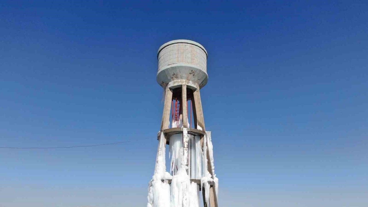 Van’da etkisini sürdüren dondurucu soğuklar nedeniyle su deposu buz tuttu.