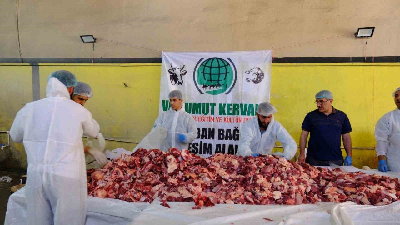 Bu yıl 19’uncusu düzenlenen geleneksel toplu kurban kesimi, Van Umut Kervanı İnsani Yardım Derneği’nin üye ve gönüllülerinin yanı sıra, vatandaşların da katılımıyla gerçekleşti. Kurban kesimi sabahın erken saatlerinde başladı. Kesimler, hijyenik şartlarda, uzman kasaplar eşliğinde, tekbir ve salavatlarla gerçekleştirildi. Ardından dernek gönüllülerince parçalanan kurban etleri özenle paketlenerek daha önceden tespiti yapılan ihtiyaç sahibi ailelere dağıtılacak.
