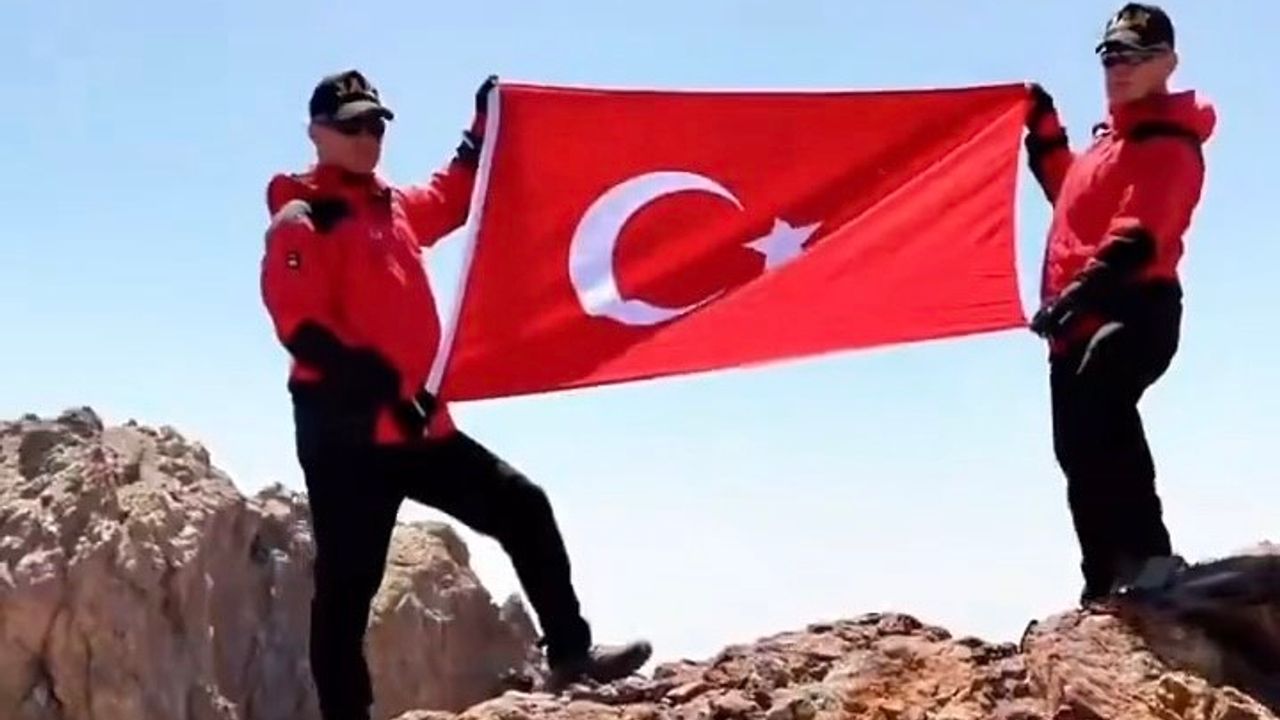 Van İl Jandarma Komutanlığına bağlı Jandarma Arama Kurtarma Tim Komutanlığı (JAK) ekipleri, 3180 rakımlı Erek Dağı’na tırmanarak Türk bayrağını zirvede dalgalandırdı.