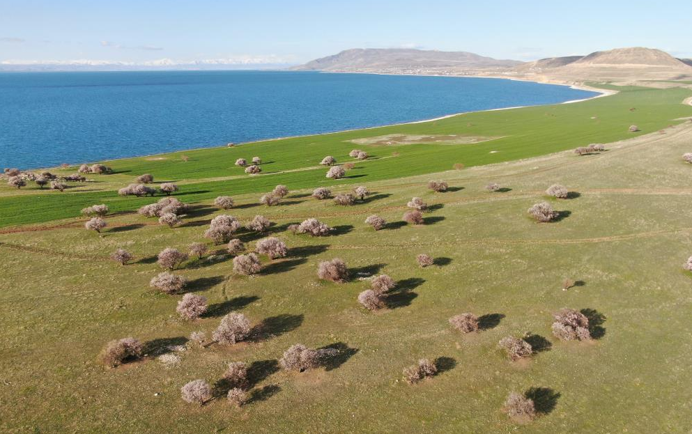 Van’ın Tuşba ilçesi sınırları içerisinde yer alan Çarpanak yarımadası, badem ağaçlarının oluşturduğu eşsiz manzarasıyla bugünlerde doğaseverlerin ve fotoğraf tutkunlarının ilgi odağı oldu.