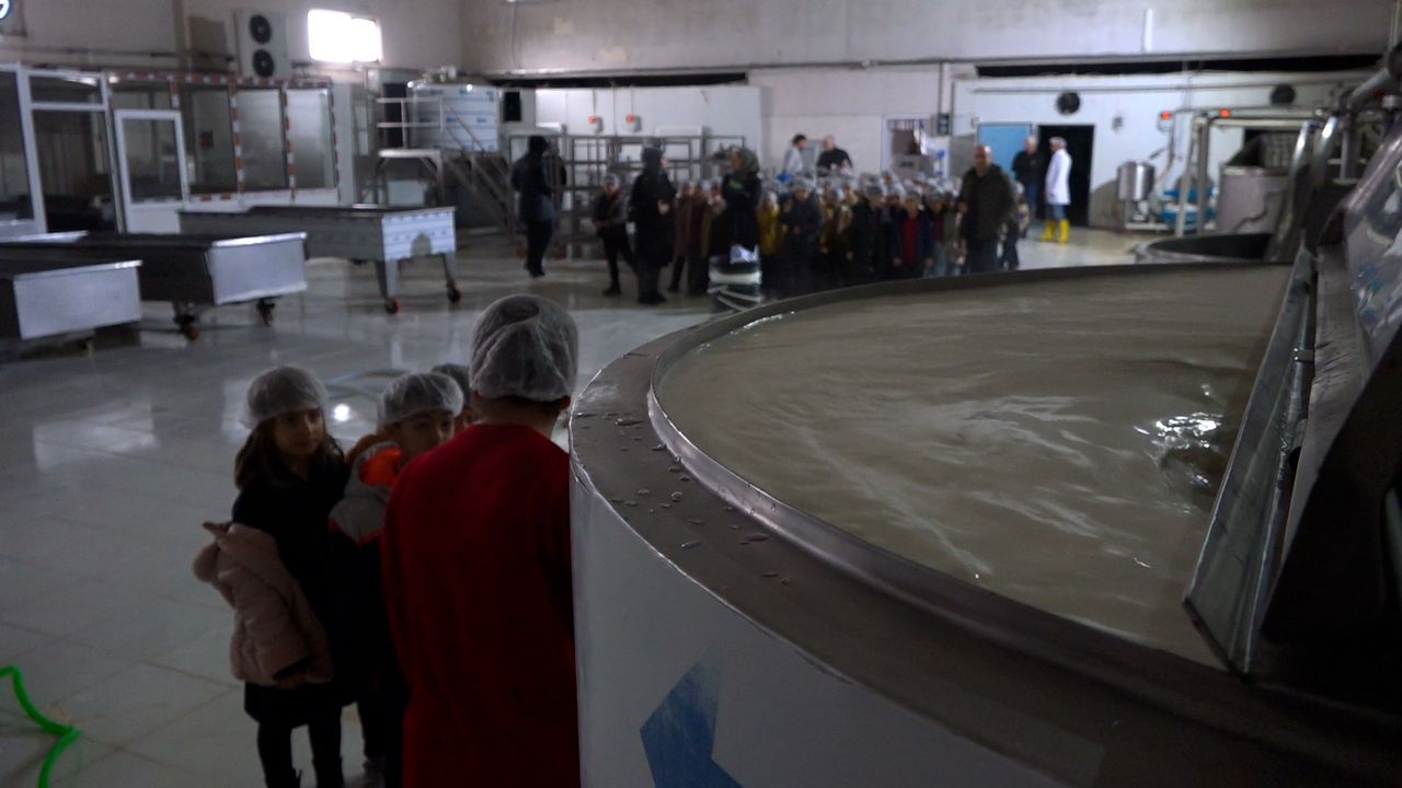 Best Yoğurt Fabrikası’nda süt ve yoğurt üretim aşamalarını ilgiyle inceleyen öğrenciler, yetkililerden bilgi aldı. Ziyaret, fabrika sahibi Vacip Demir’in öğrencilere yoğurt ve süt ikramında bulunmasıyla sona erdi.
