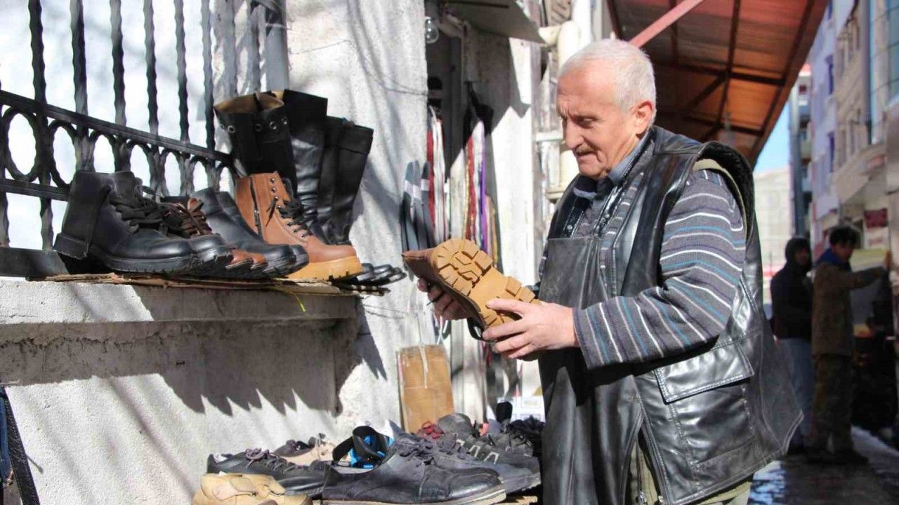 Van’da 54 yıldır ayakkabı tamirciliği yapan 71 yaşındaki Muhittin Deniz, çöpte bulduğu eski ayakkabıları tamir ederek ihtiyaç sahiplerine ulaştırıyor.