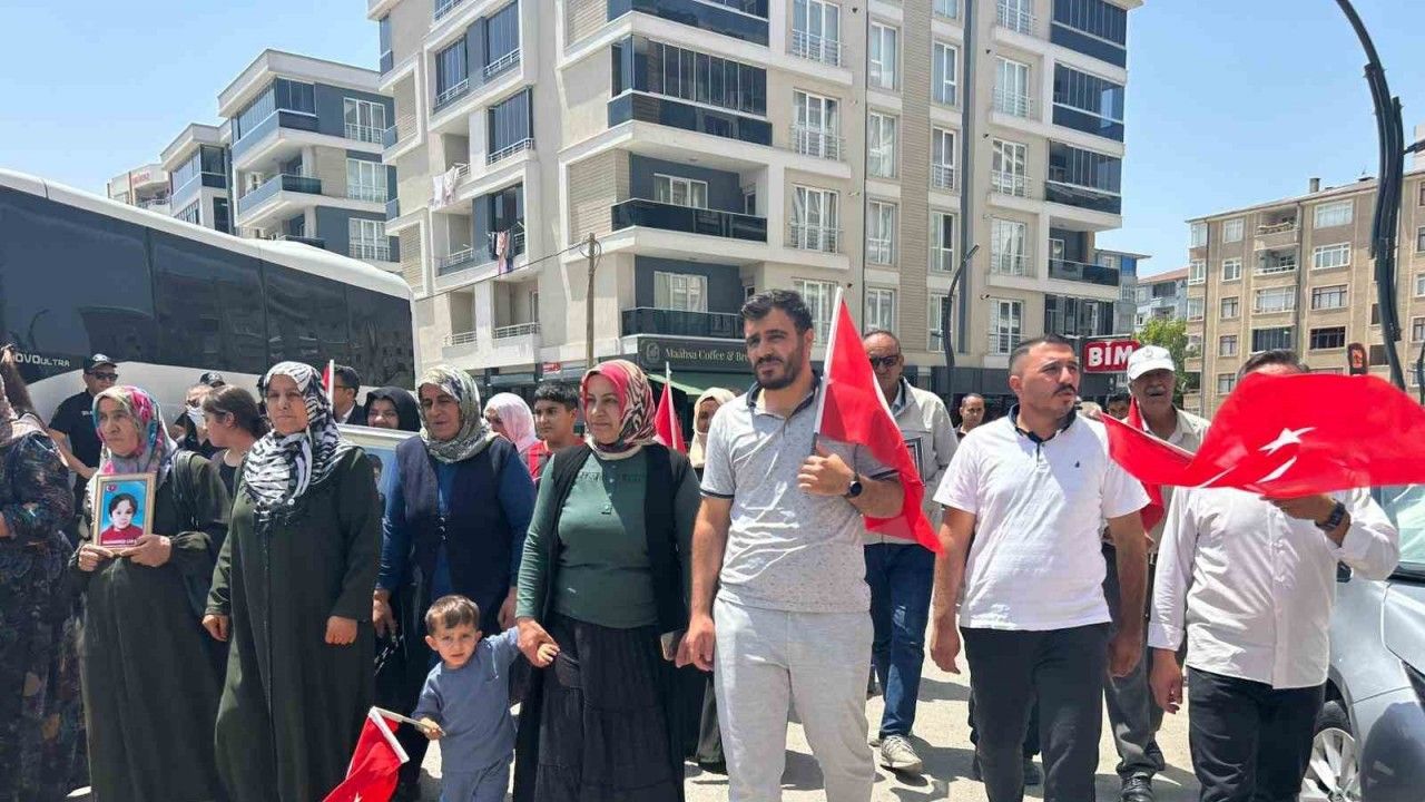 Çocukları farklı tarihlerde terör örgütü PKK tarafından kaçırılan 35 aile, ellerinde Türk bayraklarıyla DEM Parti Van İl Başkanlığı binasına yürüyerek burada basın açıklaması yaptı. Daha önce düzenlenen eylemlerde PKK ve parti aleyhine slogan atan aileler, bu kez herhangi bir slogan kullanmadı.