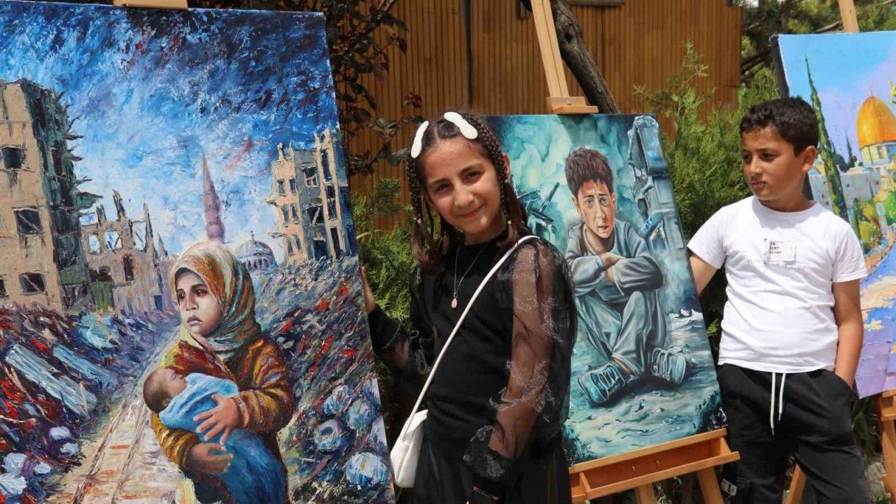 Öğrenciler ise yaptıkları eserlerde, savaş ortasında kalan Filistinli çocukların yaşadıklarını aktararak bir farkındalık oluşturmak ve orada yaşanan zulmün artık son bulmasını istediklerini söylediler.