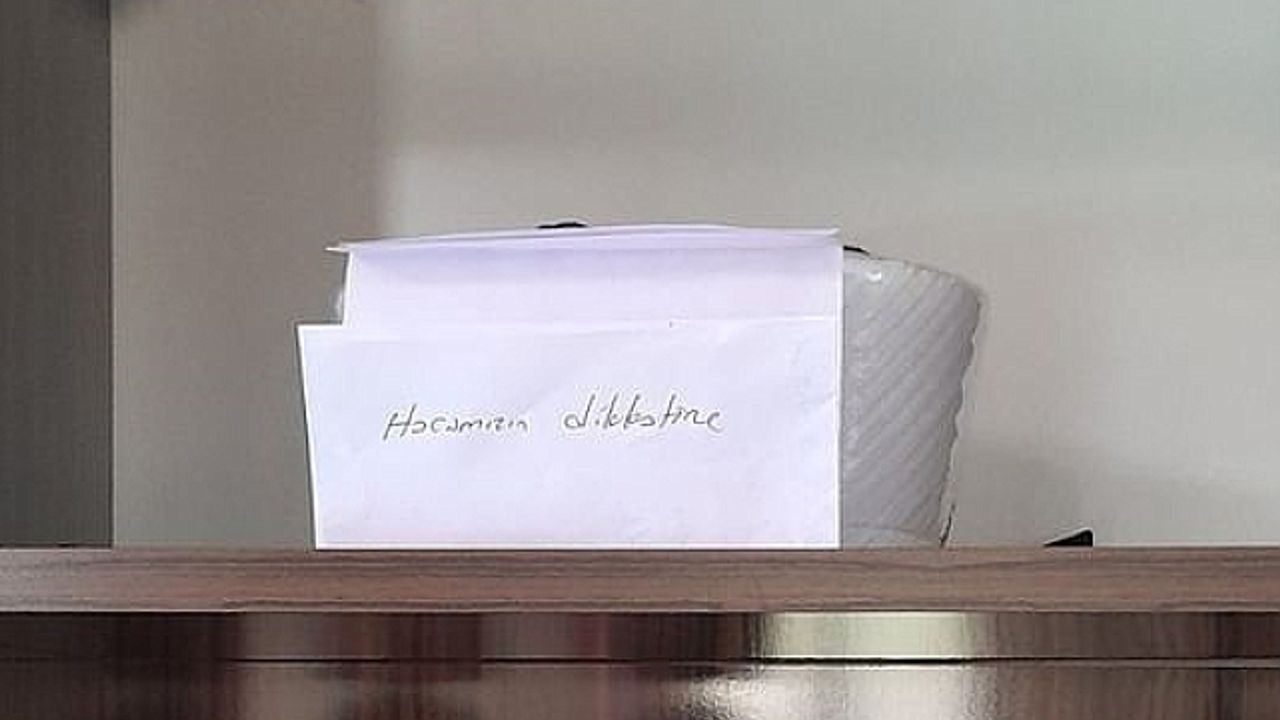 Çimenli Mahallesi Camii İmam Hatibi Ömer İpek, 'Akşam Namazını kıldık eve gittim yatsı namazı için tekrar camiye geldim ezan okudum sarığımı ve cübbemi giymek için dolabımı açtığımda bir zarf gördüm üzerine hocamızın dikkatine yazılıydı. Zarfı açınca içerisinde bir not ve 400 TL para vardı.' dedi.