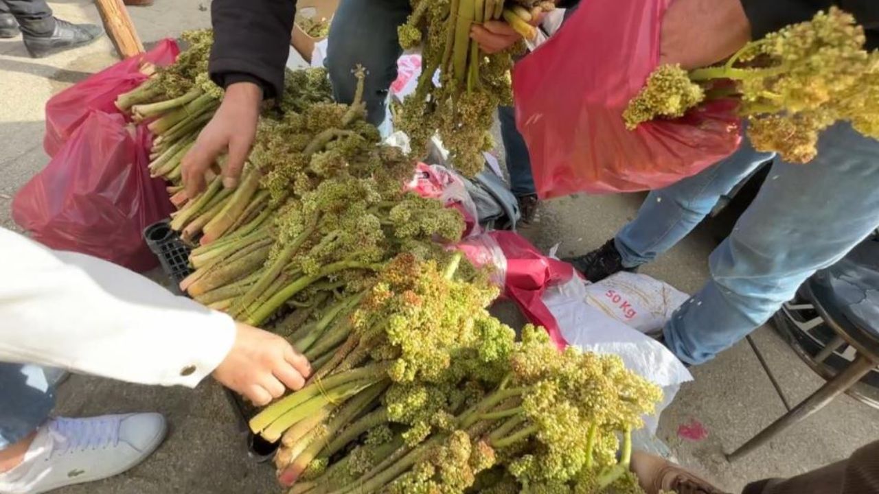 Doğu Anadolu Bölgesi’nin yüksek kesimlerinde kendiliğinden yetişen ve ‘yayla muzu’ olarak bilinen uçkun bitkisinin destesi Hakkari’nin Yüksekova ilçesinde 100 TL’den satışa çıkarıldı.