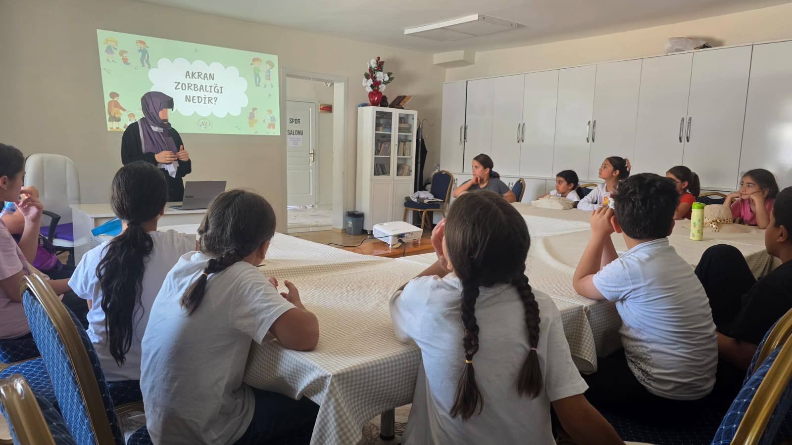 Yaz Kur'an Kursu etkinlikleri kapsamında Mutki ilçe vaizesi Zemzem Kılıç Aydın tarafından kurslar ziyaret edilerek talebelere yönelik çevre bilinci konulu sohbet yapılıyor. Vaize Zemzem Kılıç Aydın, öğrencilere yönelik verdiği seminerlerde ülkemizdeki orman yangınlarının herkesi derinden üzdüğüne, çevreye karşı sorumluluğumuzu yerine getirmemiz ve doğal kaynakların gelecek nesillere sağlıklı bir şekilde bırakılması gerektiğine dikkat çekti.