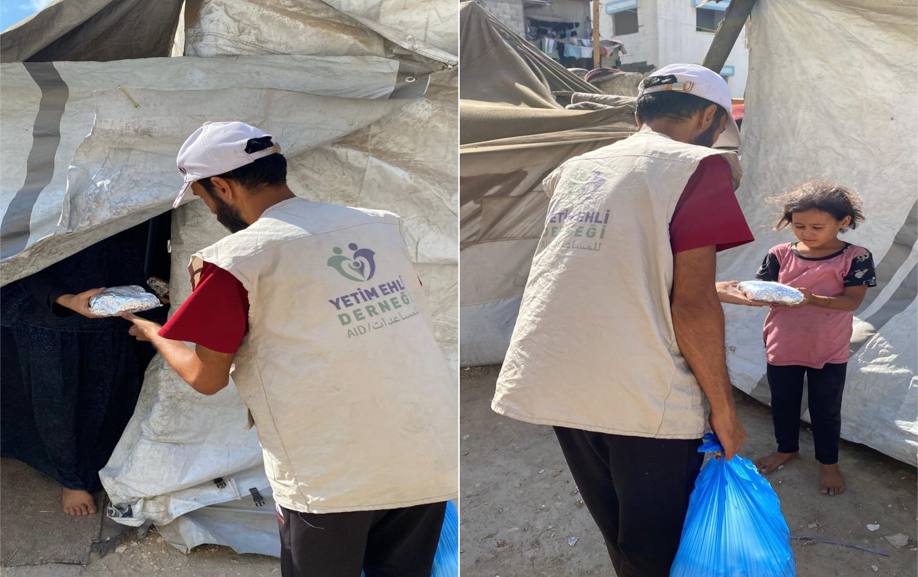 Yetim Ehli Derneği tarafından organize edilen yardım faaliyetleri kapsamında Gazze’deki ihtiyaç sahiplerine sıcak yemek, gıda kolisi, su tankeri, ekmek ve hastalar için tıbbi malzemeler dağıtılıyor.