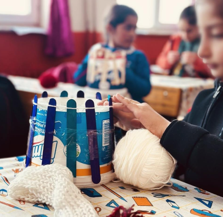 Ağrı’nın Diyadin ilçesinde öğrenciler yoğurt kovalarını kullanarak atkı üretiyor. Ağrı’nın Diyadin ilçesindeki Taşkesen köyünde yaşayan ilkokul ve ortaokul öğrencileri, projeyle yoğurt kovalarını kullanarak atkı örmeyi öğreniyor.
