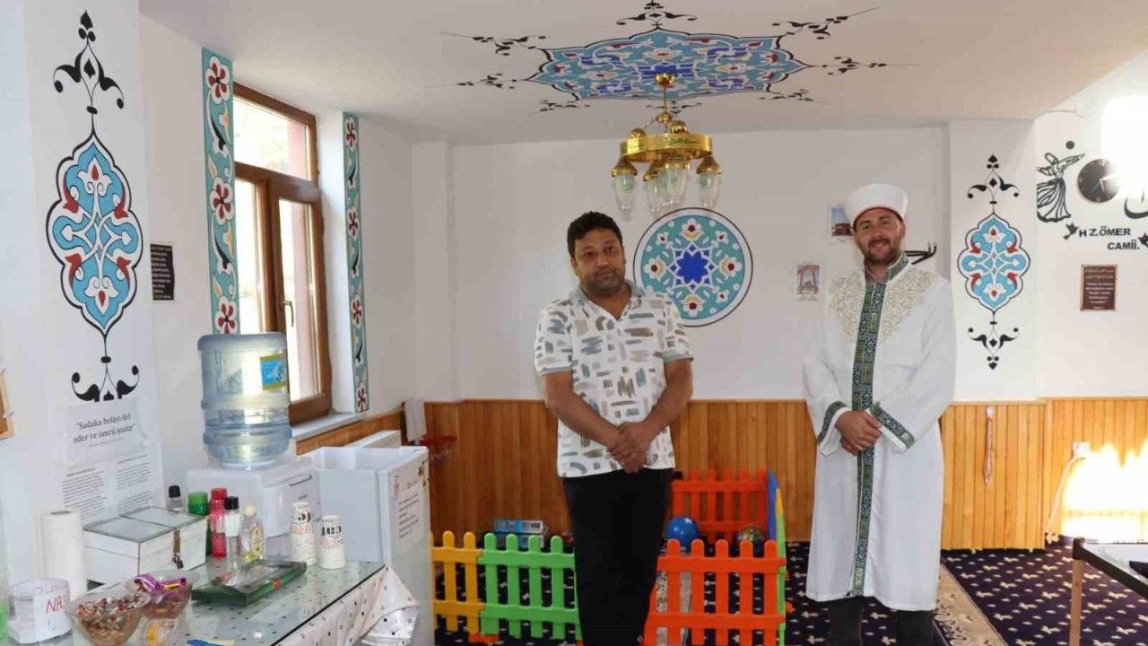 İbadet etmek için camiye gelen vatandaşlar, sıcak yaz günlerinde serin içecekler ve hediyelik ürünlerle karşılaşıyor. Bu sıra dışı hizmet ise genç imam Erkan Ayyıldız’ın girişimiyle hayata geçirildi.