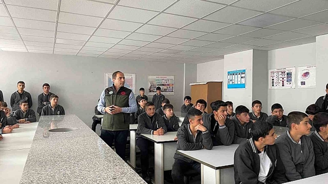 Hakkari'nin Yüksekova İlçe Tarım ve Orman Müdürlüğü ekipleri, ziyaret ettikleri okullarda öğrencilere tarım konusunda bilgilendirme yapıyor.
