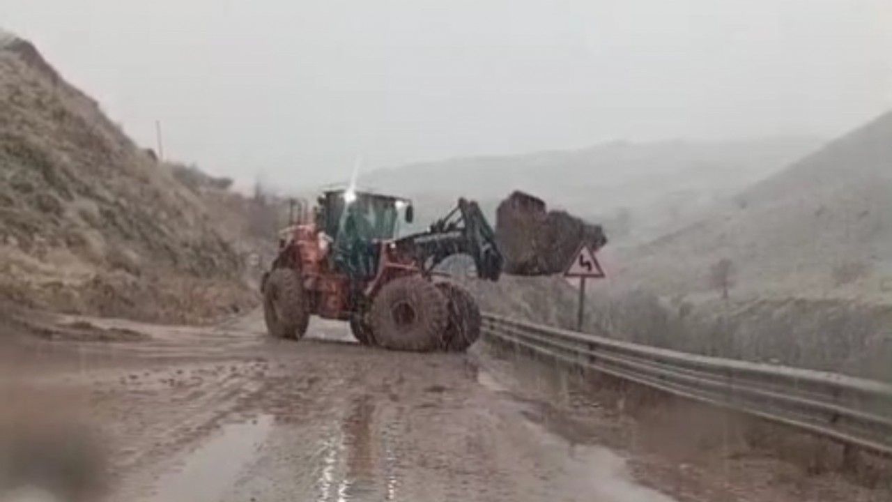 Yüksekova-Van kara yolu Çöplük mevkiinde şiddetli yağışların ardından heyelan meydana geldi.