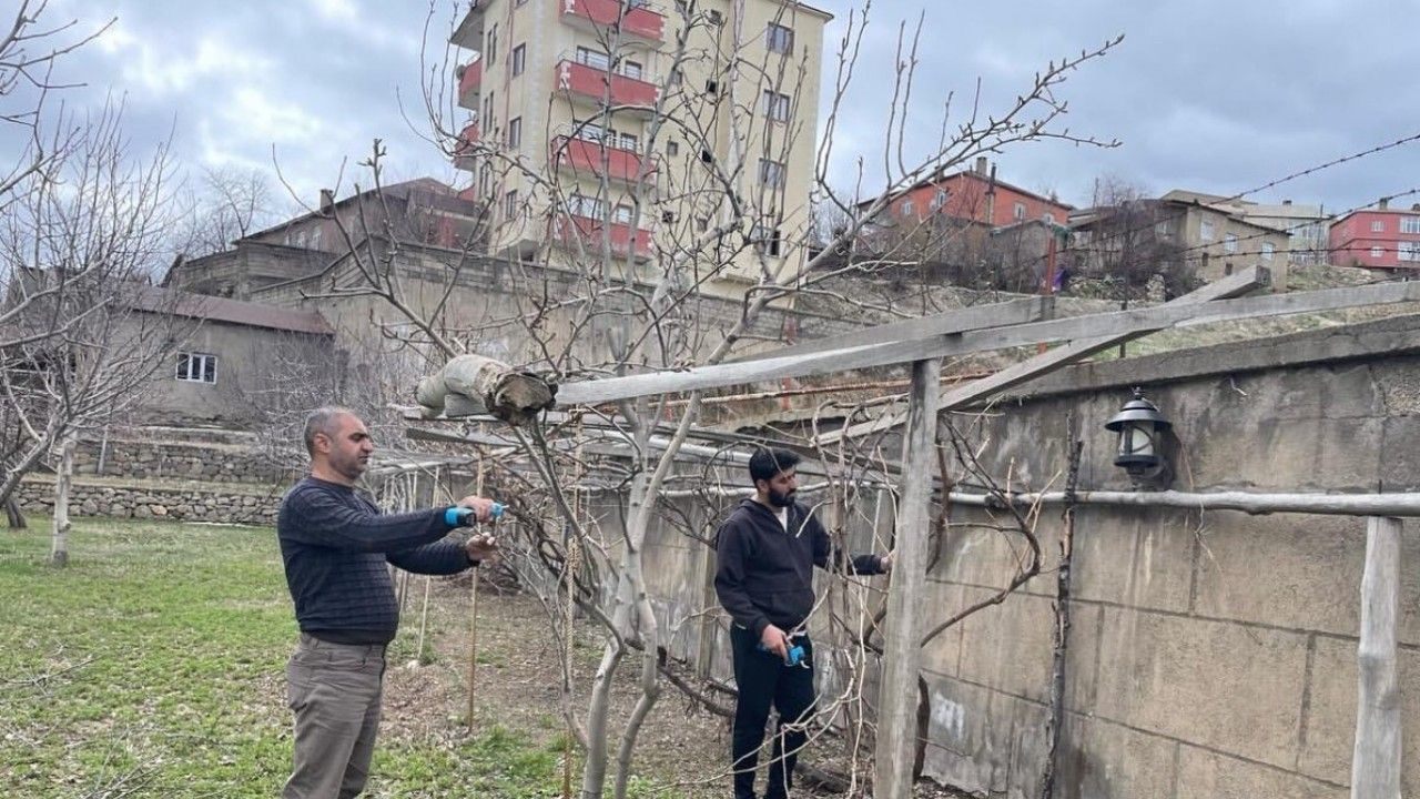 Yüksekova İlçe Tarım ve Orman Müdürlüğü tarafından ilçede ağaç budama işlemi yapılırken, aynı zamanda uygulamalı eğitim de verildi.