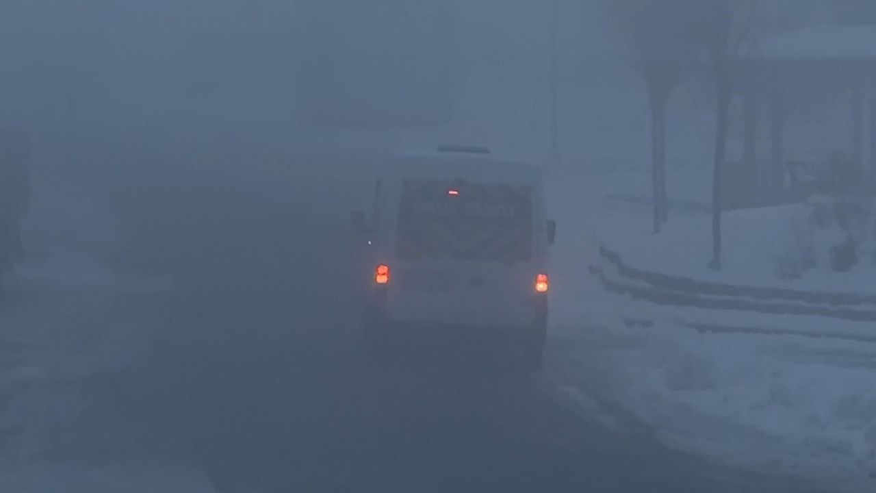Hakkari'nin Yüksekova ilçesinde etkili olan yoğun sis nedeniyle adeta göz gözü görmüyor.