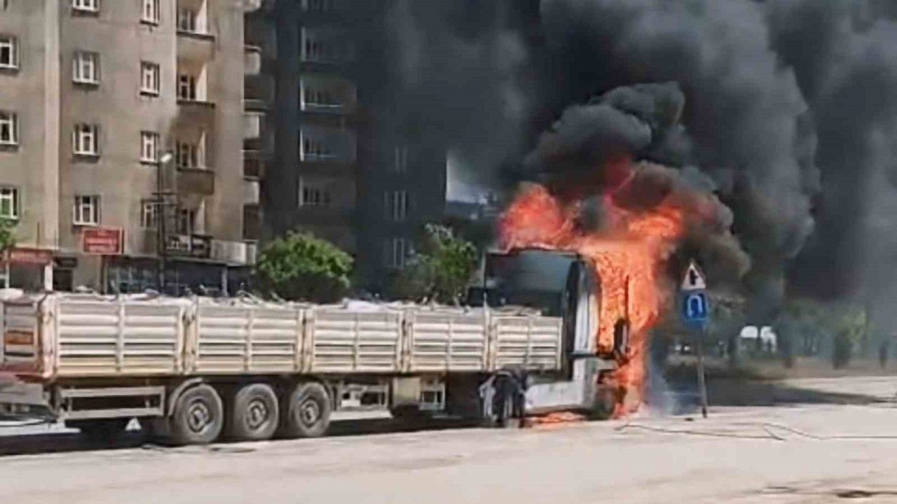 Hakkari’nin Yüksekova ilçesinde seyir halindeki maden yüklü tır alev alev yandı.