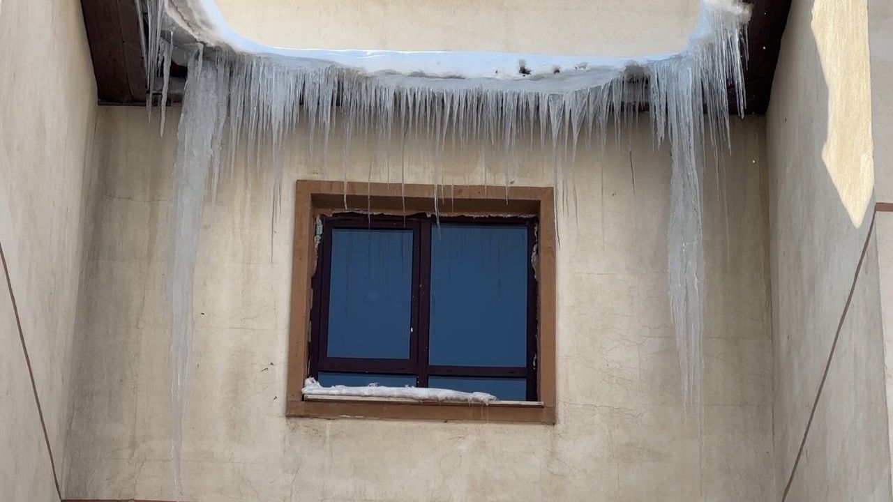 Hakkari'nin Yüksekova ilçesinde etkili olan dondurucu soğuklar yaşamı olumsuz etkilerken, bina çatılarında dev buz sarkıtları oluştu.