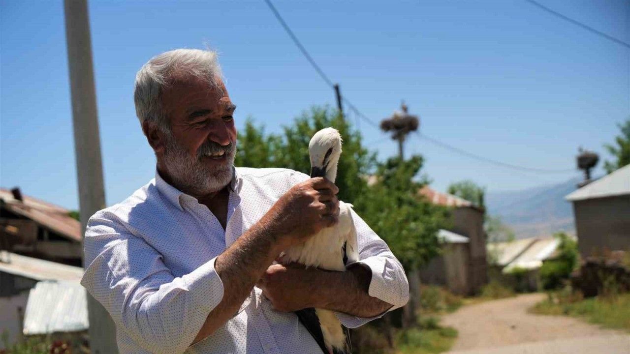 Muş’un Yelalan köyünde yuvadan düşen leylek yavrusuna köy sakinleri sahip çıktı.