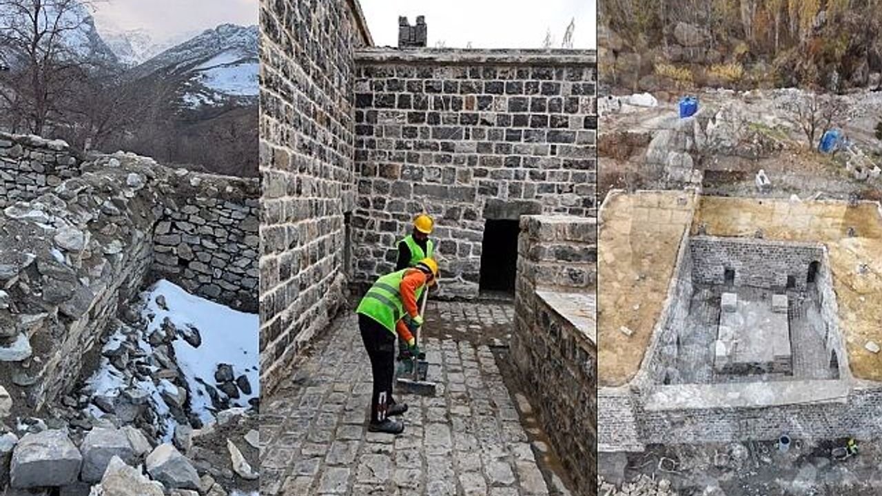 Hakkari'nin Biçer Mahallesi'nde bulunan 464 yıllık Zeynel Bey Medresesi'nde başlatılan restorasyon çalışmalarına ara verildi.